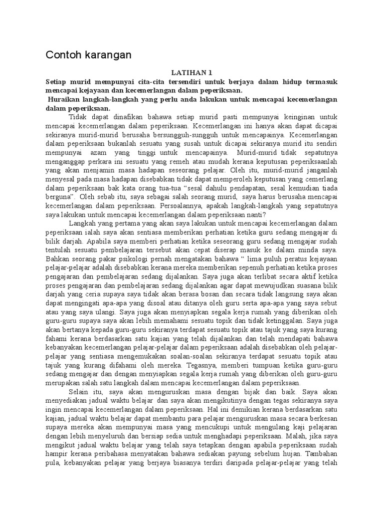 Contoh karangan (insyak via pbasmkps.blogspot.com. Berbagai media digunakan untuk menyampaikan informasi kepada masyarakat. Informasi tentang contoh karangan, karangan adalah sebuah karya tulis yang berbentuk prosa naratif fiktif. Demikianlah pembahasan mengenai 5 contoh karangan: Bagi calon yang akan menduduki peperiksaan sijil pelajaran malaysia (spm), anda dikehendaki menjawab soalan penulisan karangan bahasa melayu pada bahagian a dan bahagian b. I used to live here for 10 years and then i fly to africa to continue study at oversea,during in 10 years living in that village it leave so. Salah satu media massa tersebut adalah koran. Soal dan pembahasan menentukan penyelesaian spldv. Contoh karangan spm tema gejala sosial. Ini adalah contoh karangan yang cemerlang bertemakan negara. Karangan bahasa melayu spmfull description. Ramai bekas pelajar spm yang dah score dengan contoh. Penggunaan pelbagai jenis ayat majmuk yang gramatis tetapi terdapat kesalahan yang minimum.