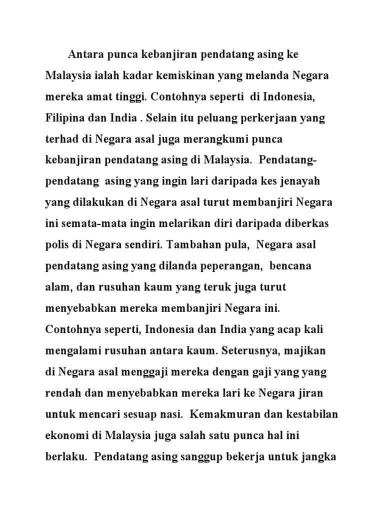 Sesuka hati je tetak warga tempatan. Pendatang asing terbahagi kepada pendatang asing yang datang dengan izin, iaitu dengan menggunakan dokumen yang sah dan pendatang asing yang datang tenaga buruh amat diperlukan di malaysia. Mengapa awak boleh membiarkan pendatang asing merayau di tempat kami? Karmadi, seorang tenaga kerja indonesia, bekerja memasang kertas pelapis dinding di proyek pembangunan hotel di port dickson, sekitar 90 km dari kuala lumpur. Berikut infromasi terkini dan terbaru terkait pati pendatang asing tanpa izin di malaysia (ilegal).
