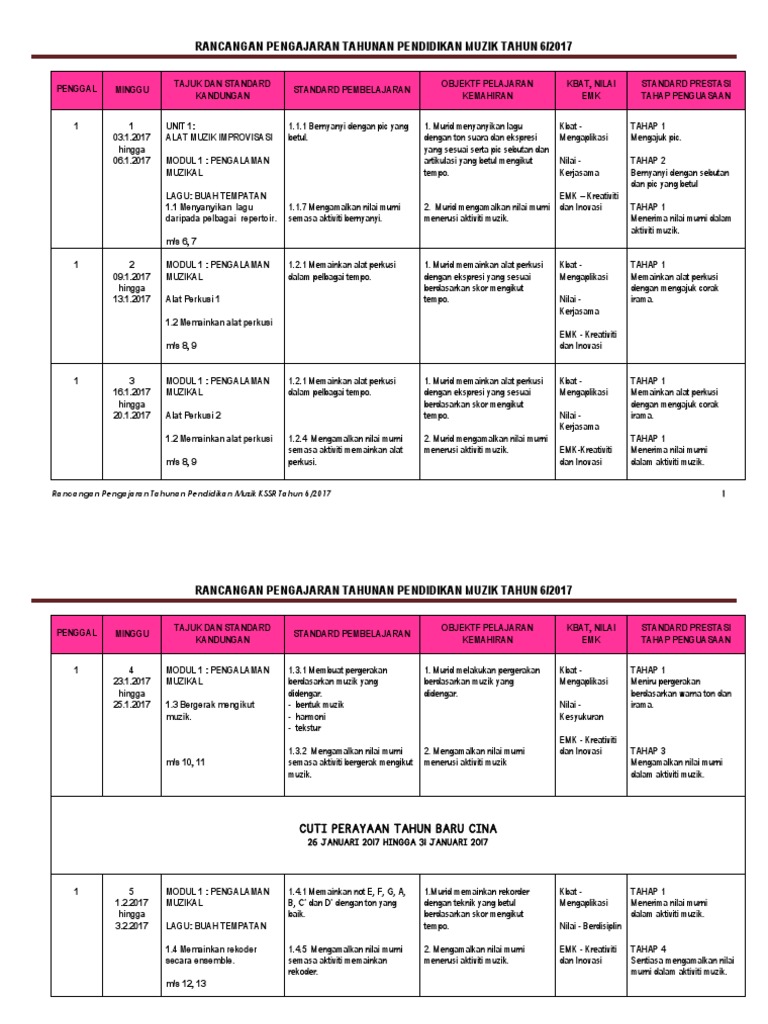 Untuk pemberitahuan kepada semua, tiada satupun rpt dunia muzik tahun 3 yang kami kongsikan ini hasil dari kami sebaliknya kami sebagai medium perantara yang menyediakan tempat himpunan dokumen. Menyanyi lagu dalam pelbagai detik10, menyanyi pernafasan yang betul meter duaan. Kepada yang mengajar muzik sekolah rendah, bolehlah muat turun rpt di sini. Rancangan pengajaran tahunan muzik tahun 6 2016 rancangan pengajaran tahunan muzik pendidikan khas tahun 6 minggu tajuk standard pembelajaran 1 1.1 mengetahui irama dalam muzik 1.1.1 menepuk tekanan detik pertama lagu yang didengar i. Rpt pai kssr tahun 1.