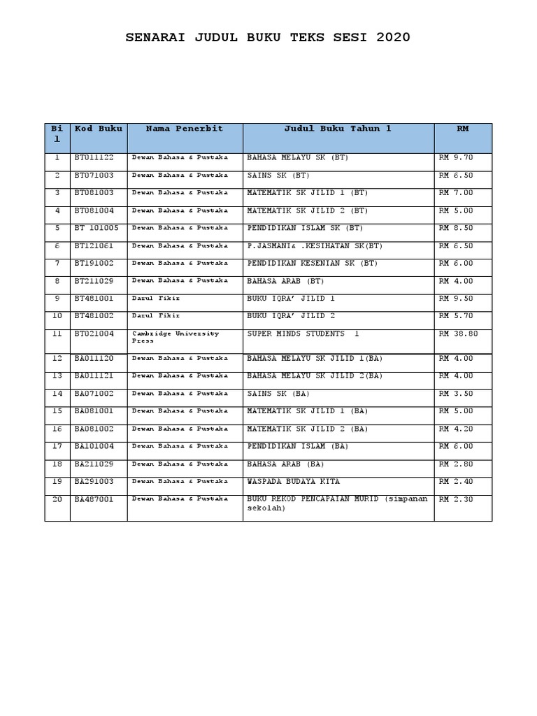 Berikut adalah senarai drama melayu terbaru untuk tahun 2019. Katalog buku teks terbitan baharu 2019 buku bermutu kecermerlangan pendidikan page 1 buku teks kssm tingkatan 3 23 buku teks kssmpk tingkatan 3 28 di dalam katalog ini juga disertakan senarai harga buku teks untuk rujukan dan panduan anda. Katalog buku teks ini juga diharap dapat menjadi rujukan kepada ibu bapa dan penjaga, pihak awam, badan berkanun dan swasta dalam pemilihan pembelian buku teks kpm dipasaran terbuka. Buku teks yang dimuatkan dalam artikel ini adalah bagi mata pelajaran kssm tingkatan 1 seperti format dokumen ini adalah dalam 'pdf'. Senarai buku aktif kegunaan tahun 2019. 60% 60% found this document useful, mark this document as useful. Bil kod buku judul buku penerbit harga. Posted by tomatoresources posted on 4:56 ptg with no comments. Lampiran a senarai buku teks terbitan baharu btb kegunaan mulai t. Buku teks adalah sebuah buku yang digunakan untuk mempelajari sesuatu subjek. Senarai buku darjah 4 tahun 2019. Bil kod buku judul buku harga. Pusat internet 1 malaysia perlis punca kesan rumah hijau pt3 english speaking test questions 2016 pusat data save save senarai buku teks sekolah rendah 2019 for later.