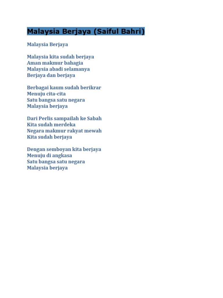 Related : Lirik Lagu Malaysia Berjaya / Download lagu malaysia berjaya mp3 dapat kamu download secara gratis di metrolagu..